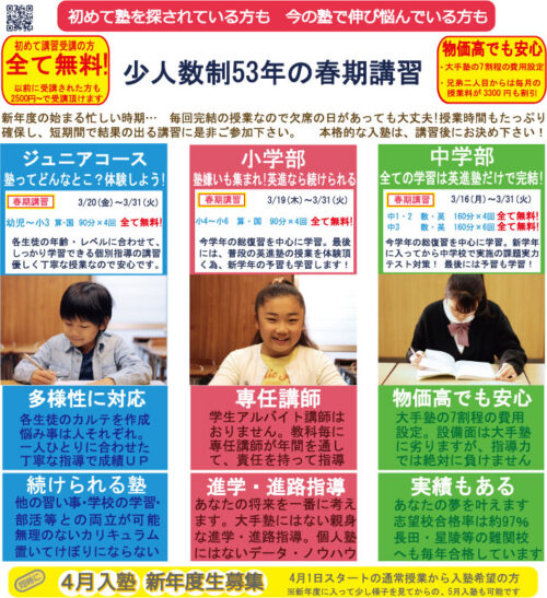 ★春期講習をご参加頂けない方、4月入塾も可能です。ご検討下さい!